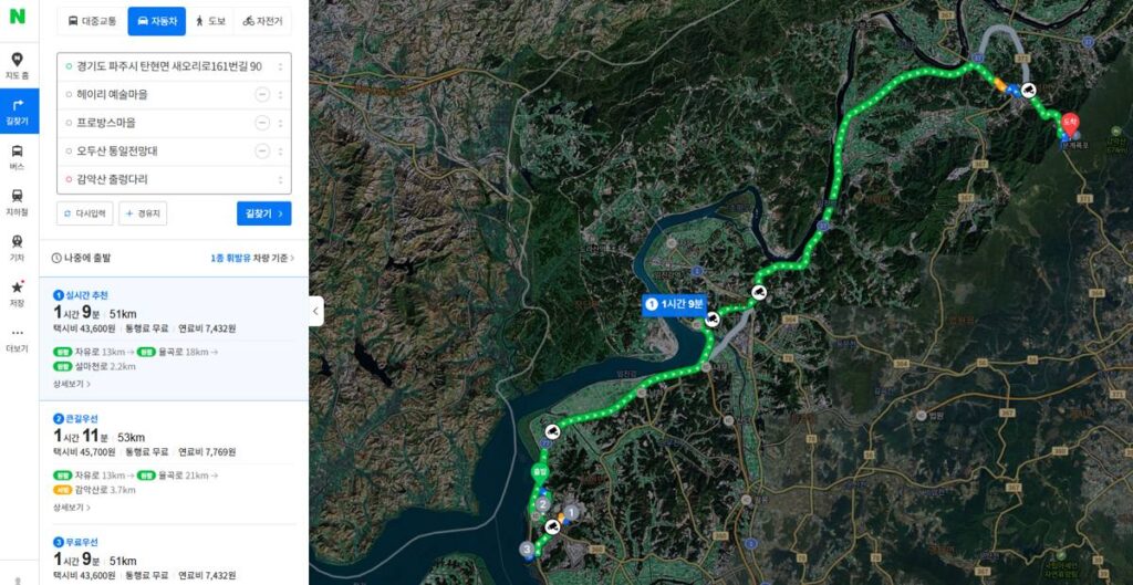 < This image is a screen captured for the purpose of guiding routes by utilizing the Naver Map Directions function, The copyright is on Naver Maps. Source: Naver Maps >