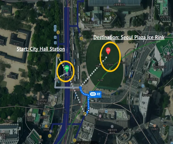 ✓ The Seoul Plaza Ice Rink is located just a 3-minute walk from City Hall Station.